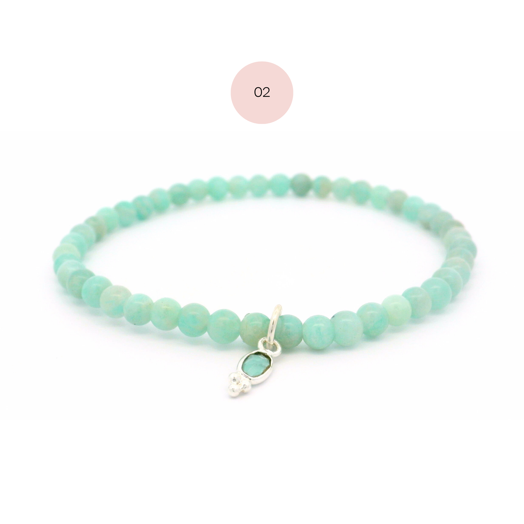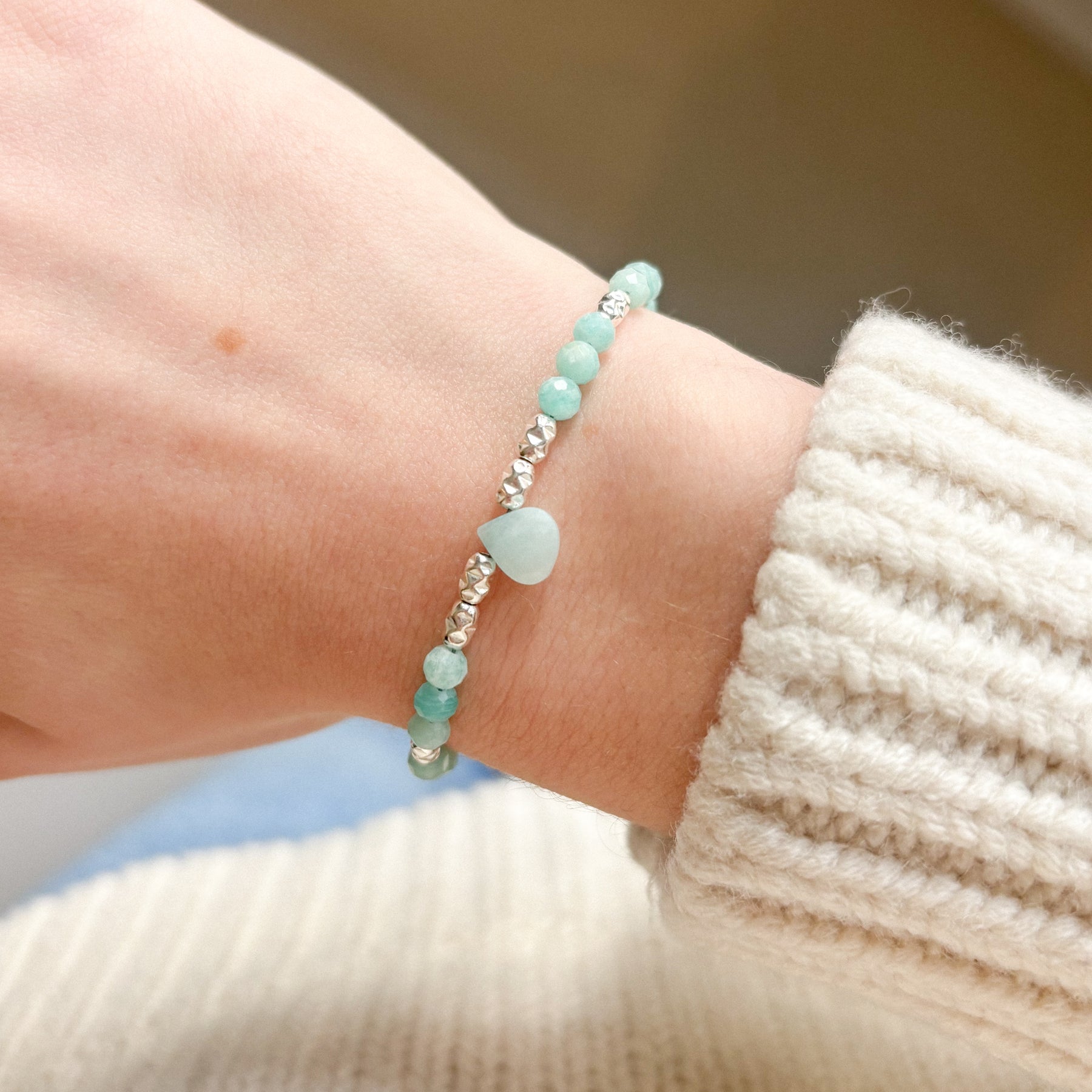 Handgefertigte Armbänder aus Amazonit Steinen. Die Armbänder sind Einzelstücke und somit nur einmal erhältlich.