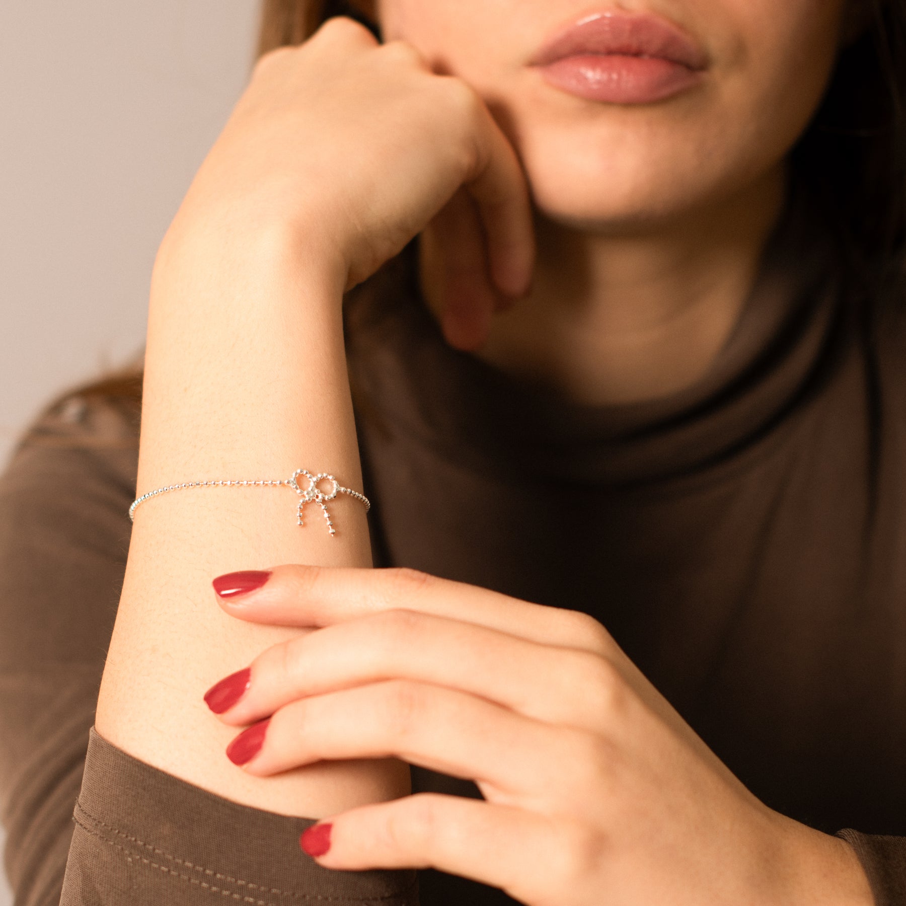 Leicht, fein und symbolträchtig – das Armband Bella schmiegt sich mit seiner zarten Schleife elegant ans Handgelenk. Ein verspieltes Detail, das Freude und Leichtigkeit in jedes Outfit bring.