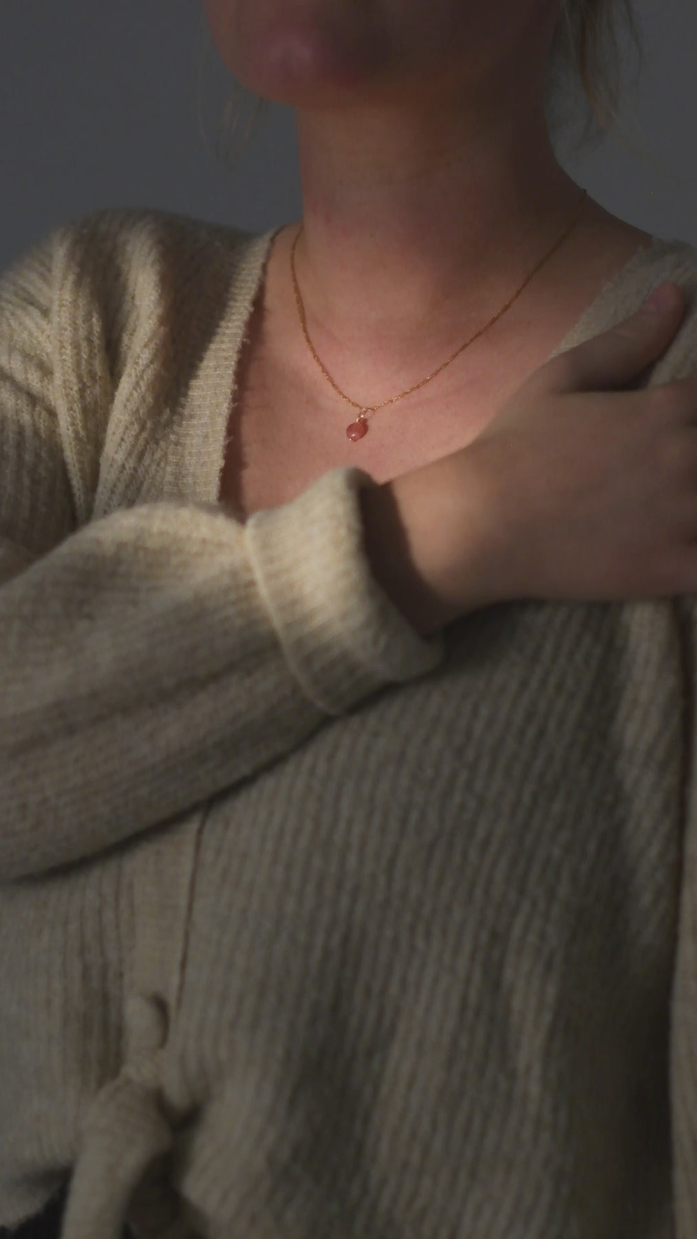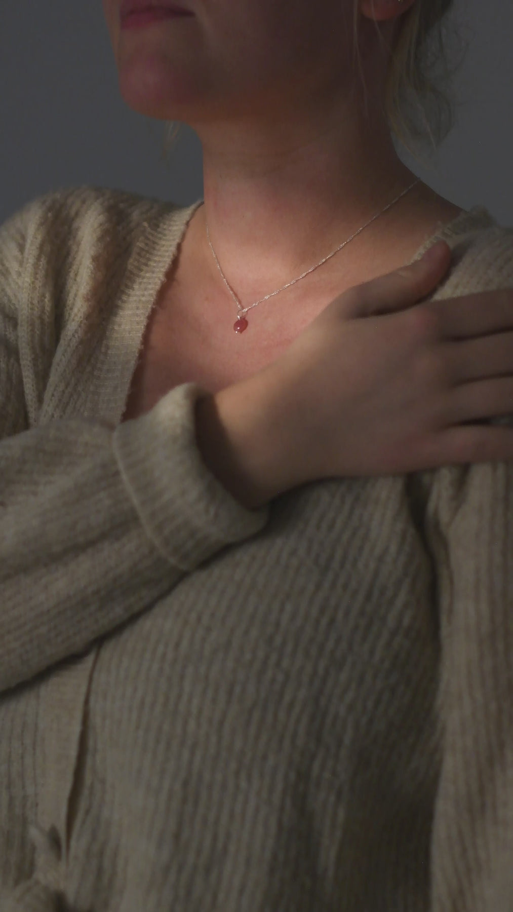 Zart und erdverbunden – die Halskette Maple kombiniert eine feine Silberkette mit einem handgefertigten Rhodochrosit-Anhänger. Der Stein steht für Liebe, Mitgefühl und Lebensfreude und bringt eine wohltuende, sanfte Energie.