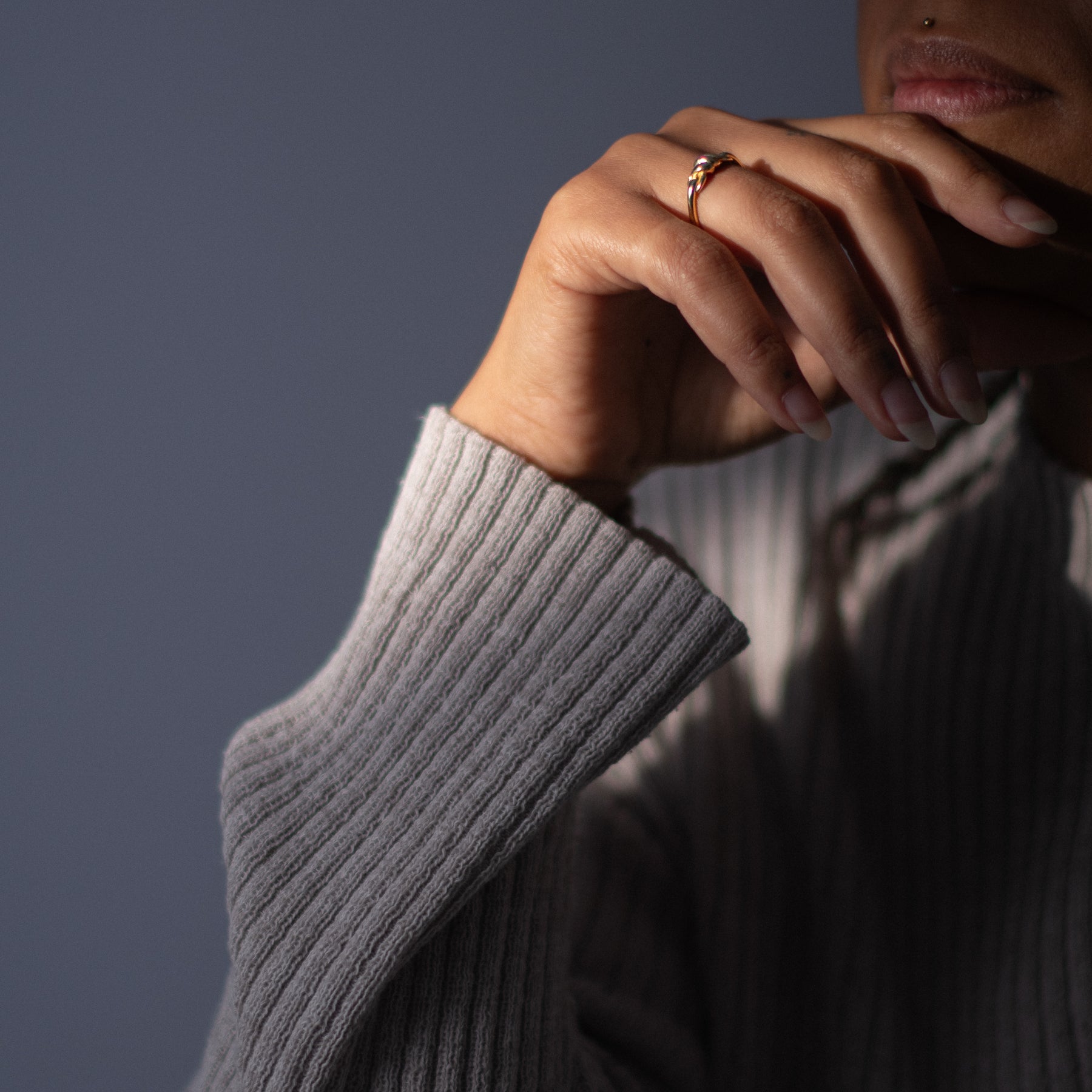Der Ring Knot ist ein stilvolles Statement für Verbundenheit und innere Stärke. Mit seinem geschwungenen Knoten-Design wirkt er elegant und gleichzeitig modern – ein Symbol für Liebe, Halt und Zusammengehörigkeit. Gefertigt aus hochwertigem S925 Sterling Silber, überzeugt er durch seine edle Schlichtheit und seine zeitlose Ausstrahlung.