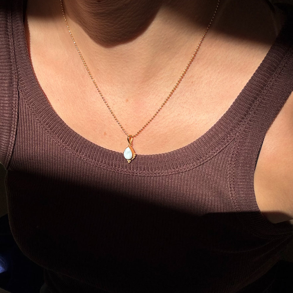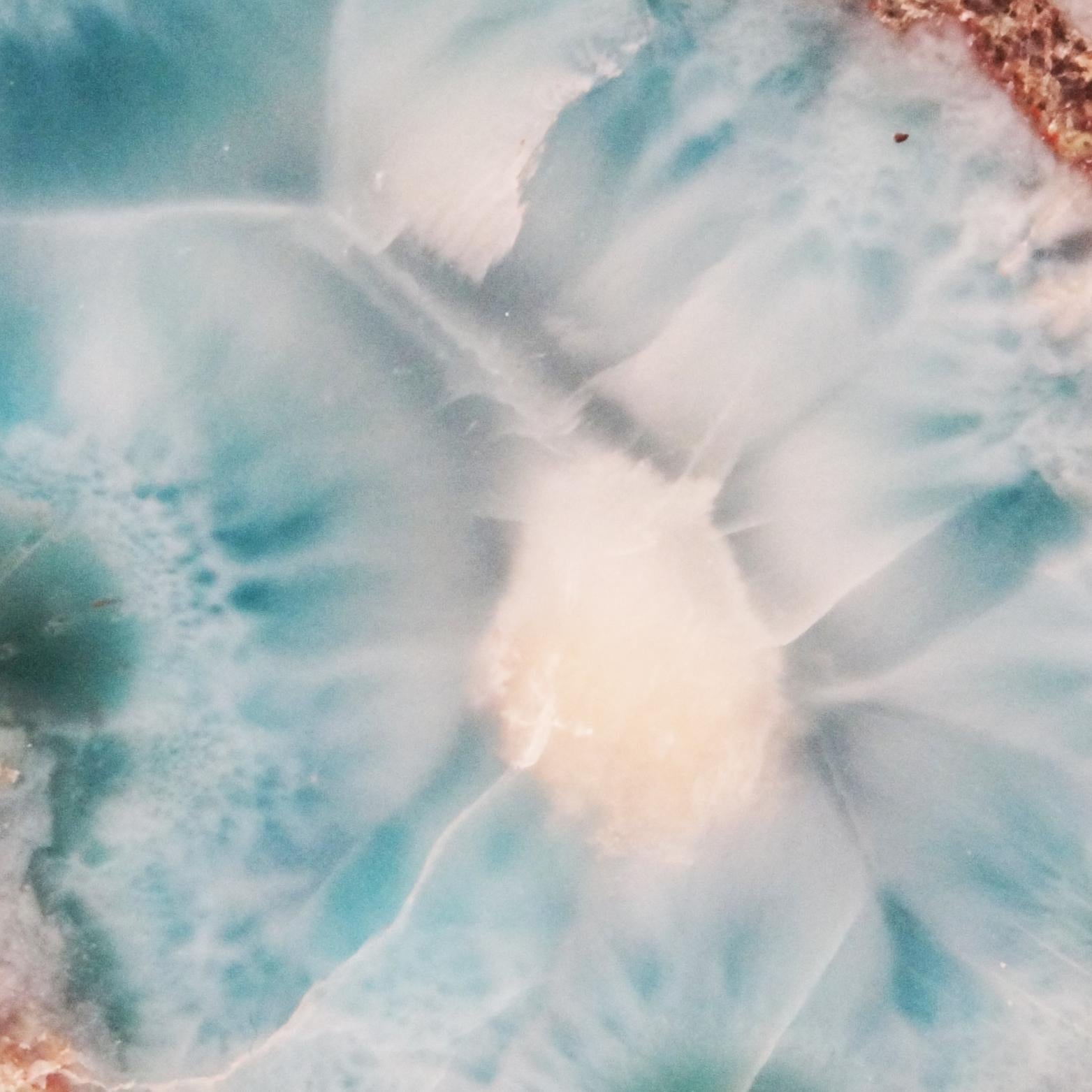 Larimar erinnert mit seinen sanften Blautönen an das Meer und wird oft mit innerer Ruhe und emotionaler Harmonie in Verbindung gebracht.