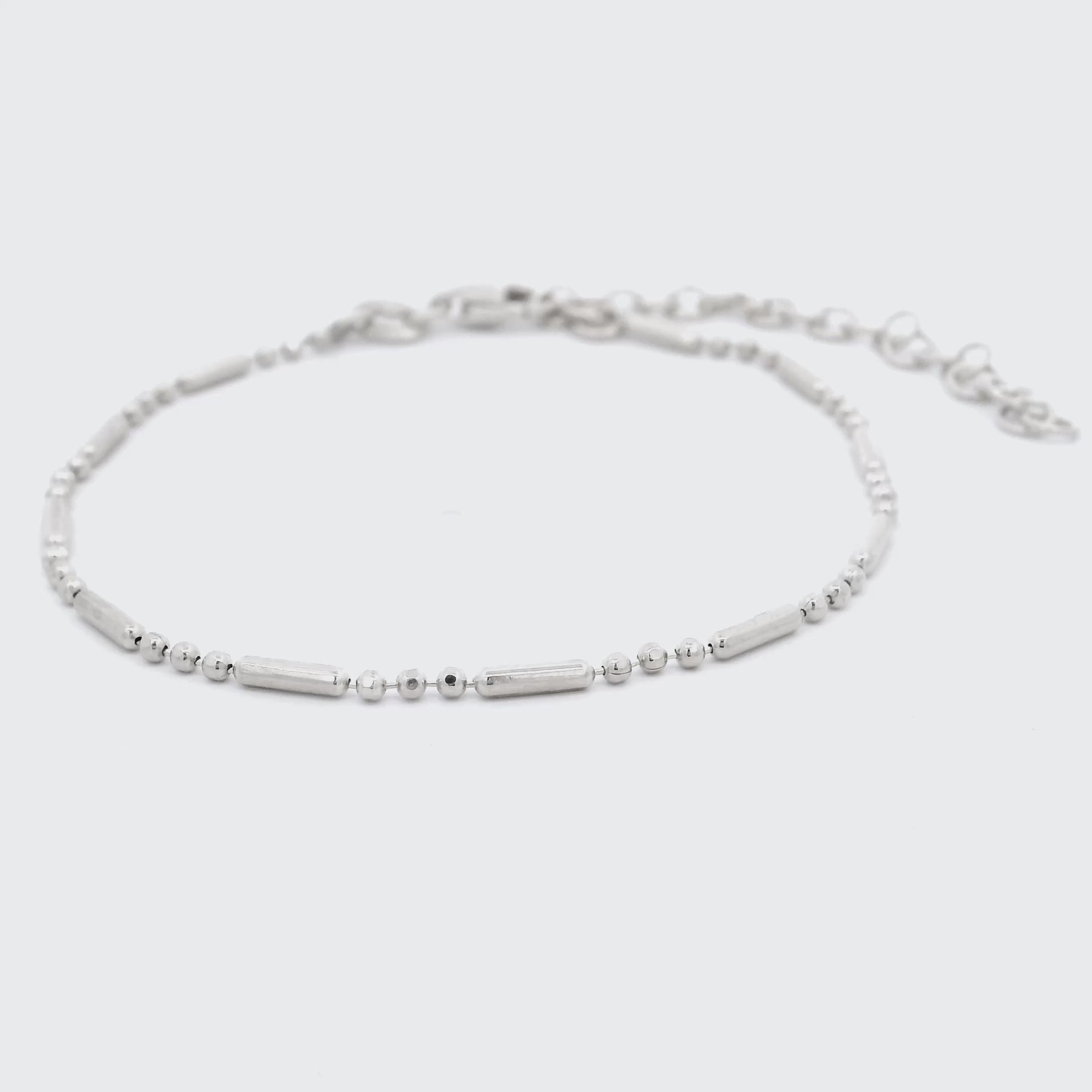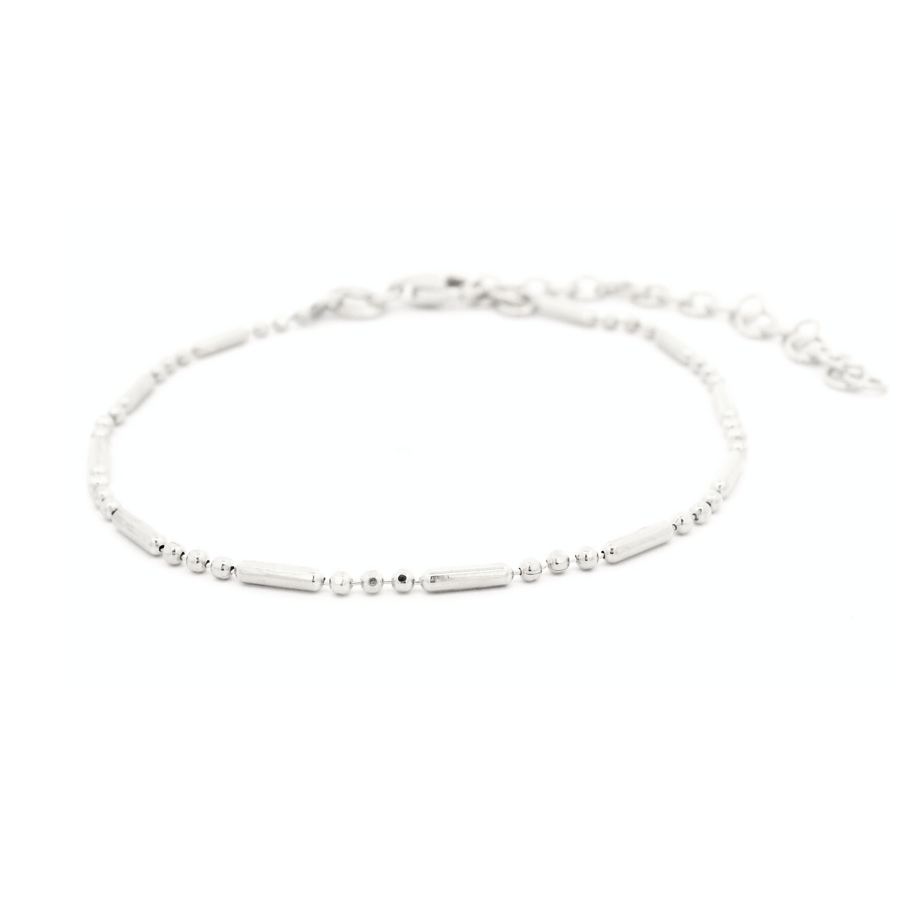 Das Armband Layla vereint feine Kügelchen mit schlichten Stäbchen-Elementen zu einem eleganten, leichten Look. Ein dezenter Alltagsbegleiter aus hochwertigem 925er Silber der sich mühelos mit anderen Schmuckstücken kombinieren lässt.