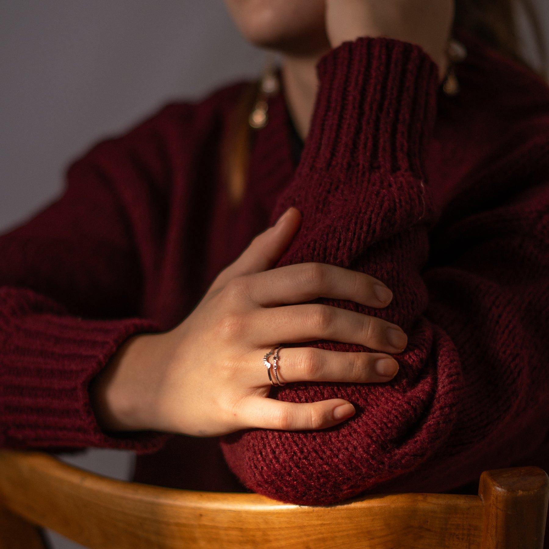 Goldie ist ein verstellbarer Ring, der Wärme trägt. Sein sanft glänzendes Gold und die feinen, wellenartigen Details erinnern an Sonnenstrahlen, die über die Haut tanzen. Leicht, elegant und zugleich voller Charakter, begleitet er dich im Alltag wie ein stilles Versprechen von Licht und Leichtigkeit.