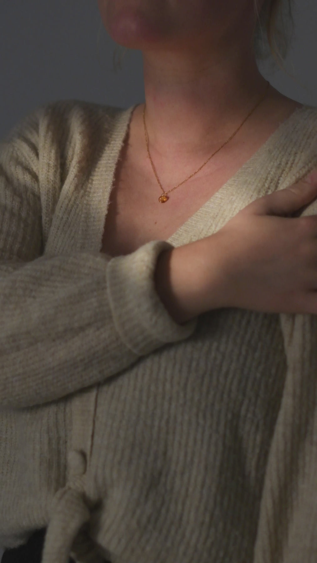Natürlich und strahlend – die Halskette Amber vereint eine feine Silberkette mit einem handgefertigten Bernstein-Anhänger. Der Stein steht für Lebensfreude, Schutz und innere Balance und schenkt eine sanfte, warme Energie.