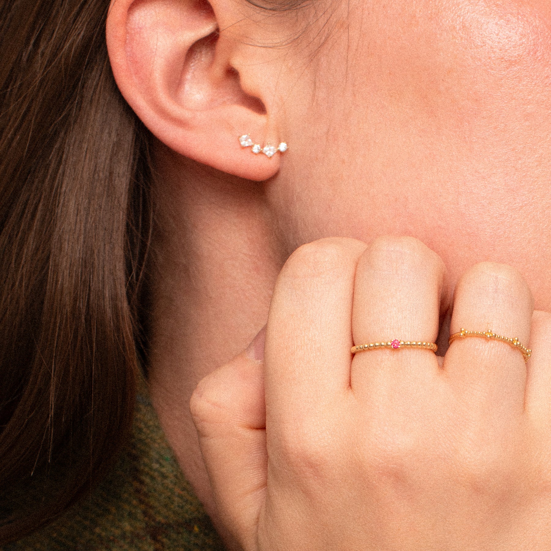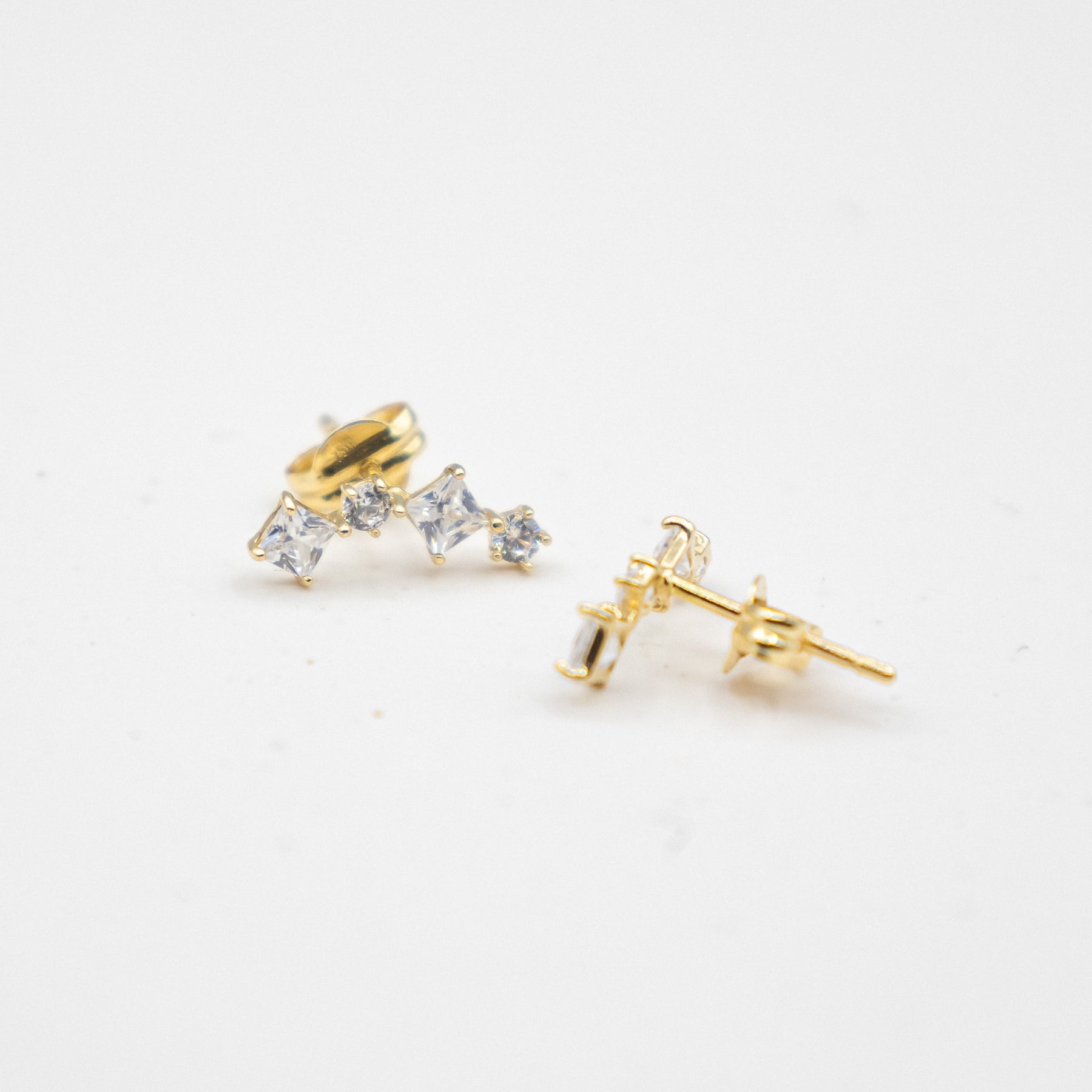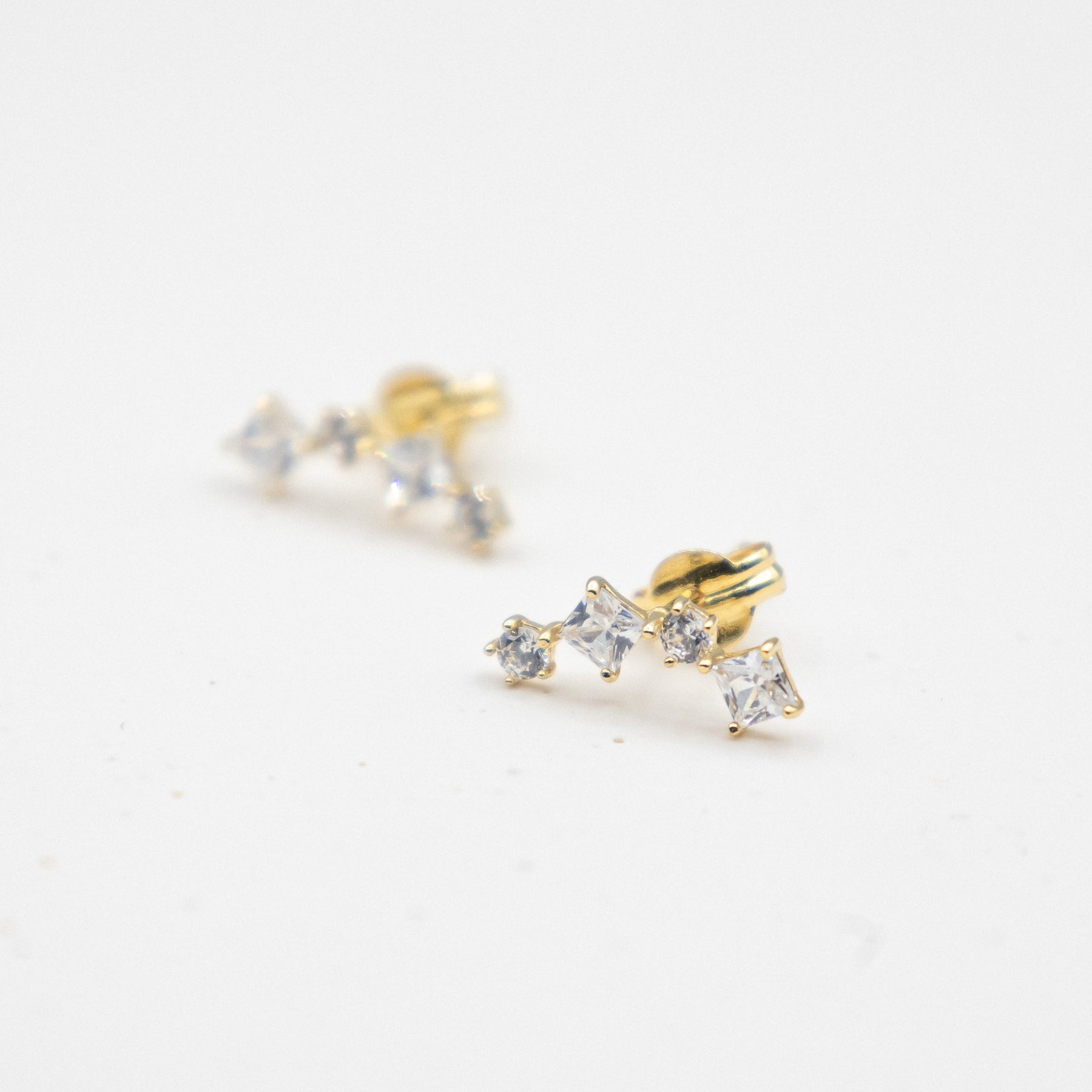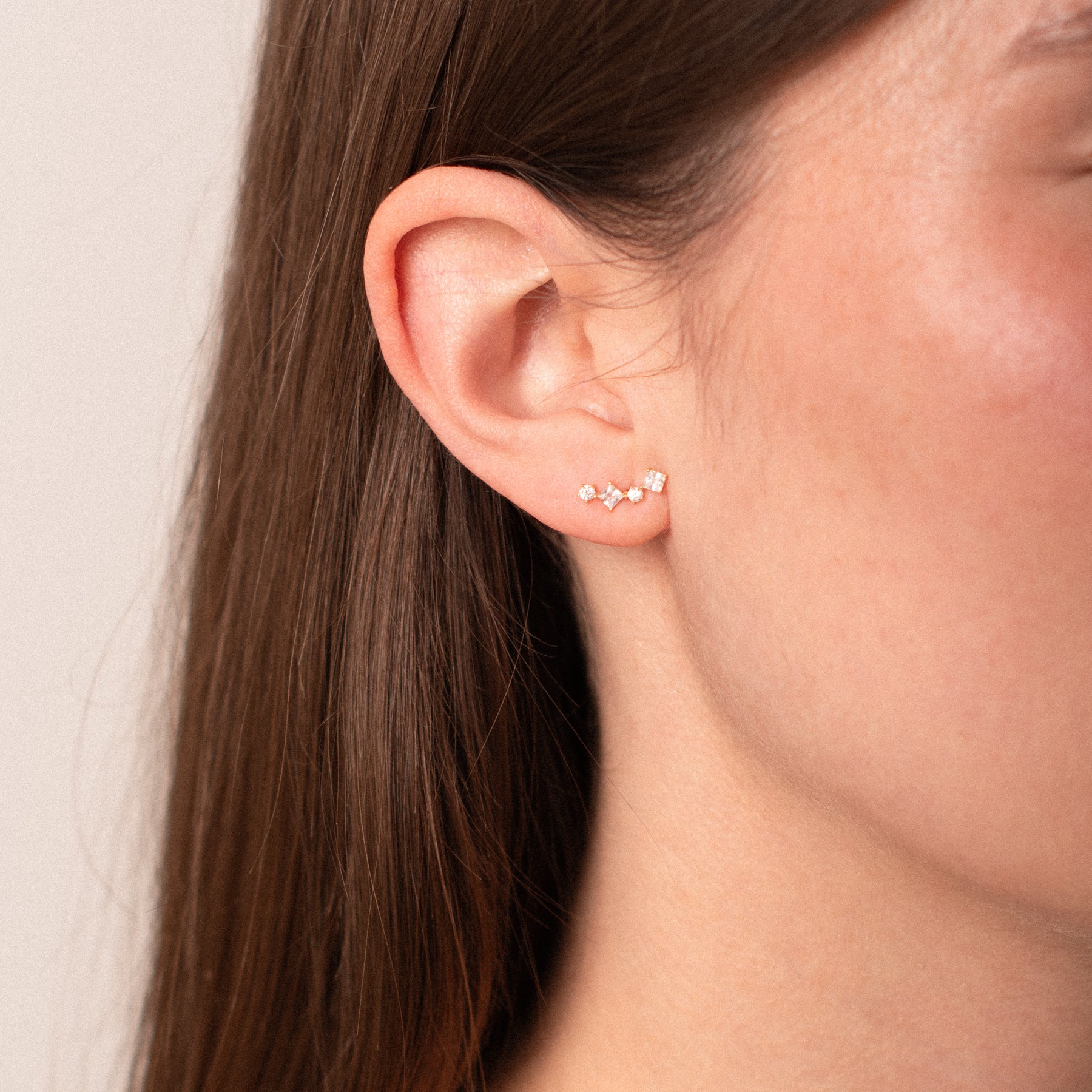 Die Ohrstecker Ivy fangen das Licht in zarten Form ein. Ihr feines Design erinnert an glitzernde Sonnenstrahlen – ein feminines Schmuckstück aus Echtgold und Zirkonia, das Leichtigkeit und Lebensfreude ausstrahlt.