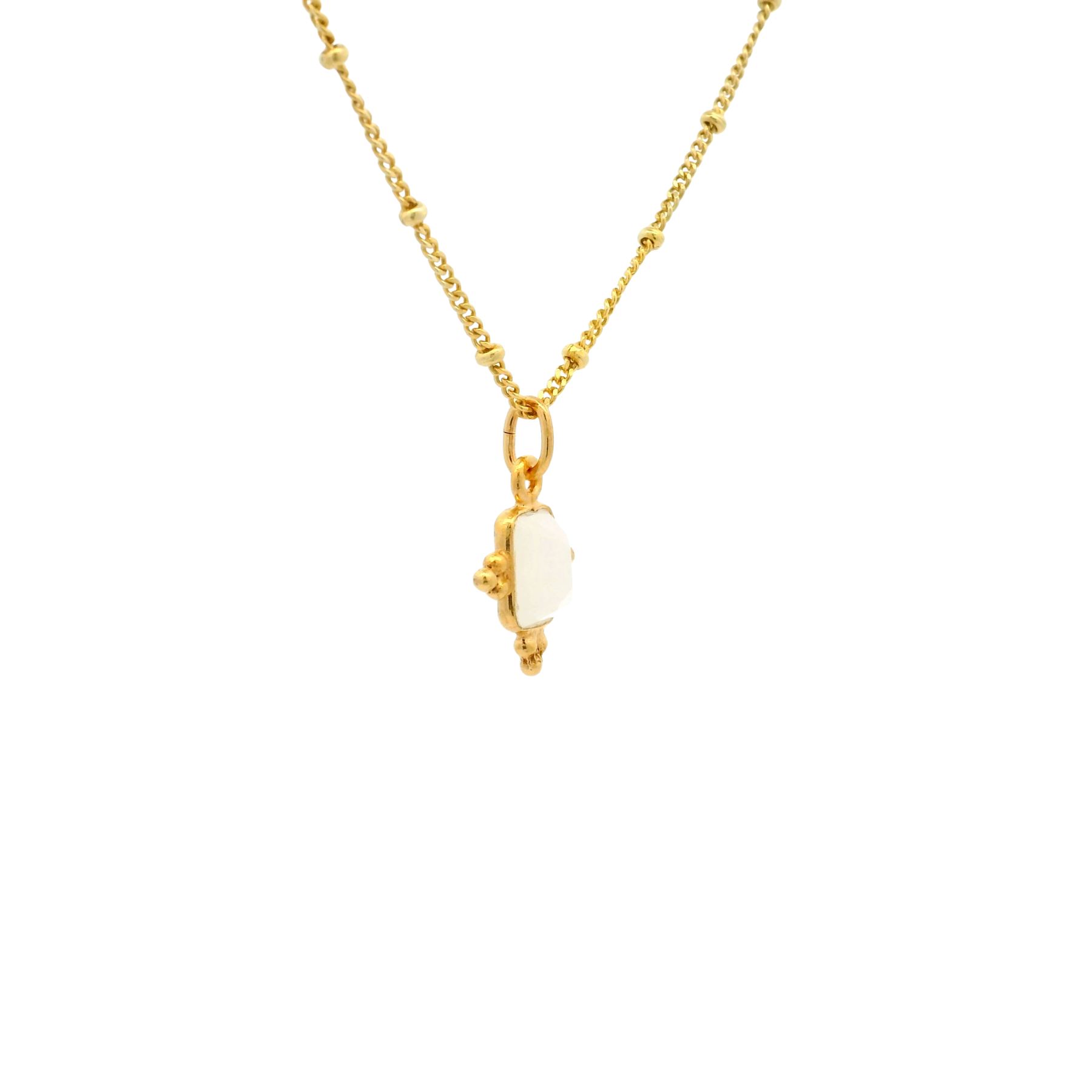 Zoey Mondstein strahlt Magie und Ruhe aus – feines Farbspiel erinnert an nächtliches Licht auf stillem Wasser. Mondstein steht für Intuition, Weiblichkeit und innere Balance.