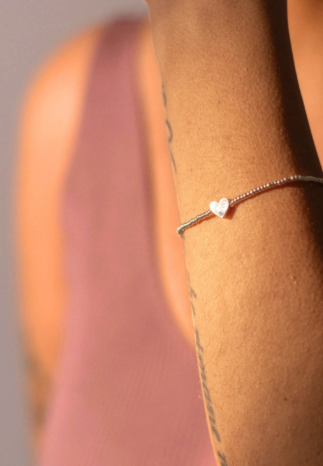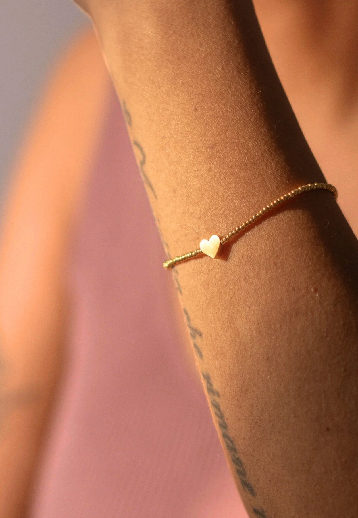 Armband Valentine: Handgefertigtes Stretch-Armband mit Miyuki-Perlen und Herz als Highlight. Grösse M - 18cm